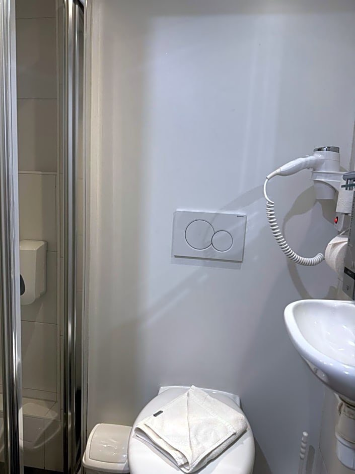 This room is equipped with flat-screen TV and phone. The bathroom is fitted with a shower.